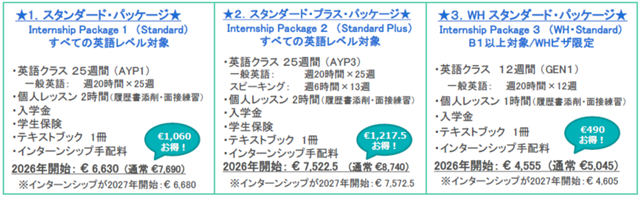 英語とフルタイムのインターンシップがセットになったコースもお得!!