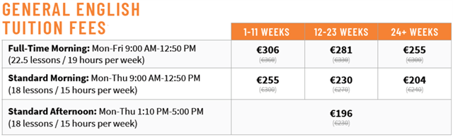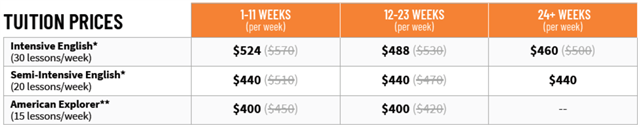 →上記授業料の割引に加えて、なんと週あたりの施設利用料(20ドル)も無料となっています!